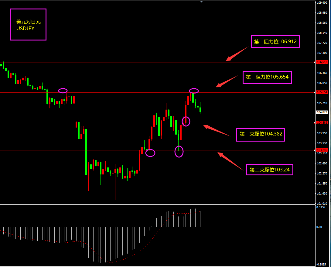 趋势分析:美指超跌反弹,带动美日上行,避险减弱,美日迎来反弹。