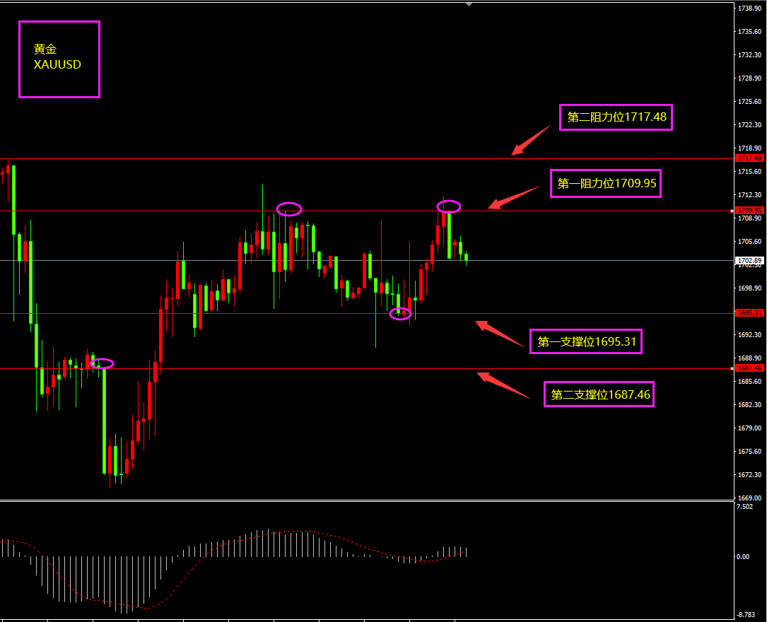 策略分析:第一支撑位附近轻仓看多,如有大阴线跌破第一支撑位则转为观望。